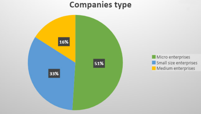 As we can see in figure 1, slightly more than half of the workers answered the survey work in micro enterprises (51%), while the 33% are from small size enterprises and 15% from medium size enterprises.